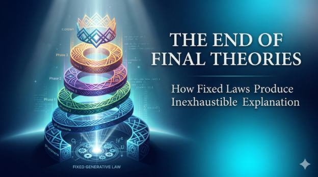 A new paper — backed by 422 machine-checked theorems and zero gaps — proves that a system can be completely governed by fixed laws and still never admit a final explanation. The implications reach from physics to biology to organizations to AI.… Read More “The End of Final Theories: How Fixed Laws Produce Inexhaustible Explanation”
